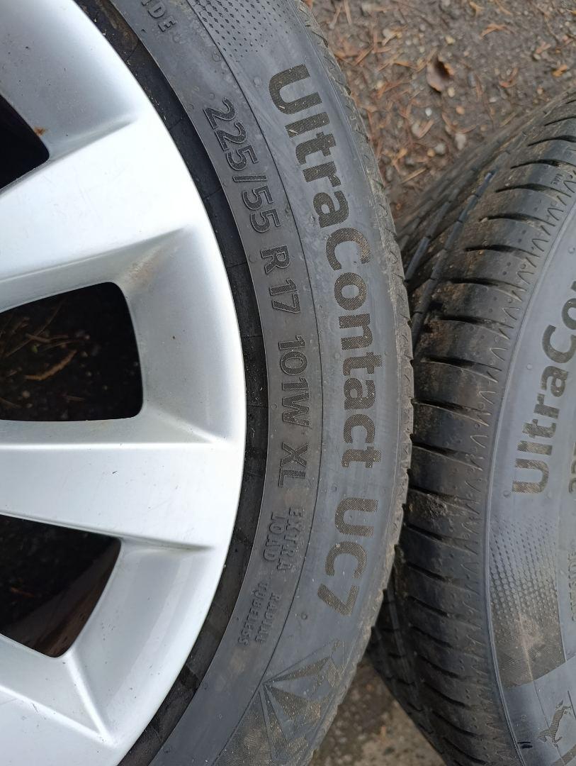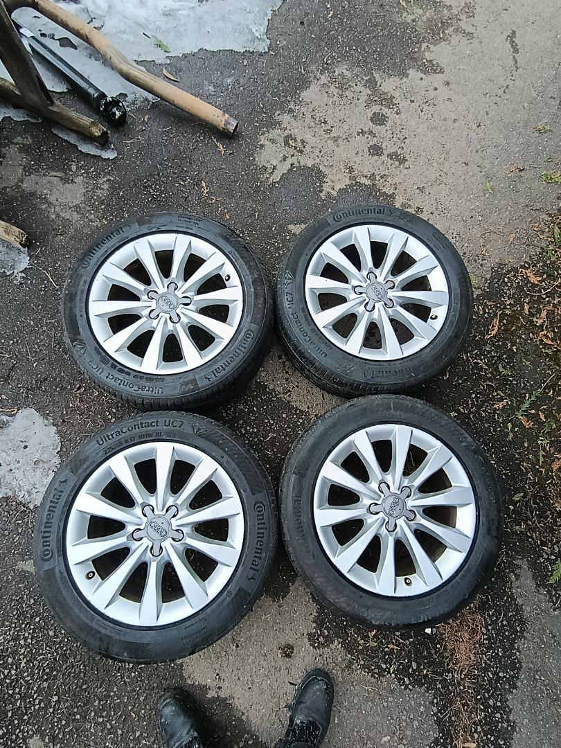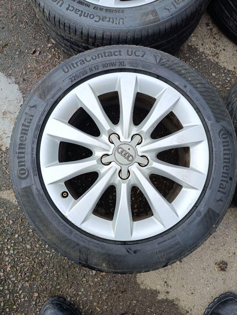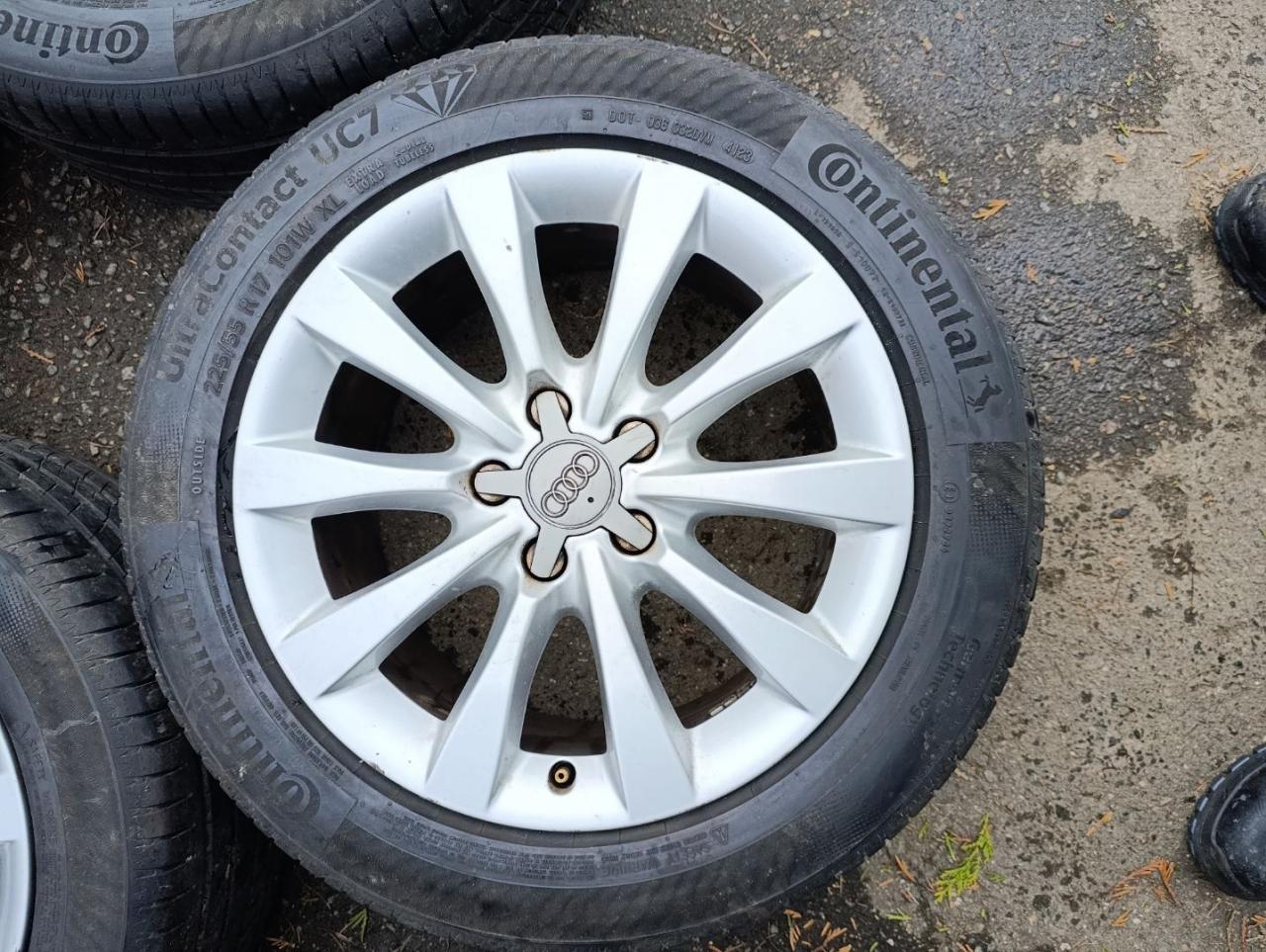 Комплект колес R17x8 (Continental UltraContact UC7 225/55) R17, ширина обода: 8, ET 39 мм. Шины: легковые, летние, 2023, остаточная высота: 6мм. Audi A6 C7 рест. 2015 2.0 л., бензин