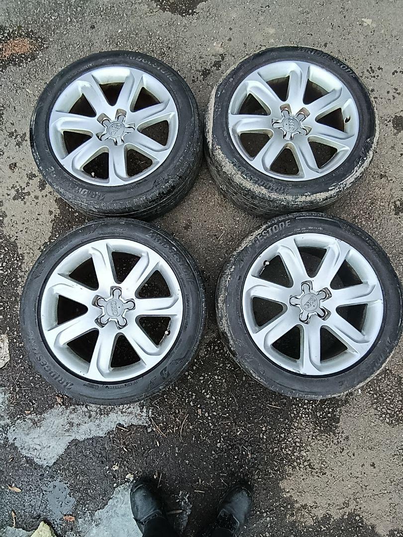 Комплект колес R18x8.5 (Bridgestone Turanza 255/45) R18, ширина обода: 8.5, ET 32 мм. Шины: легковые, летние, остаточная высота: 4мм. Audi A7 4G рест. 2015 2.0 л., бензин